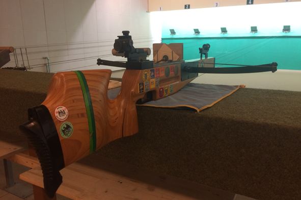 Frühe Formen der Armbrust finden sich bei den Tonfiguren des Qin Shihuangdi (210 v. Chr.). Seit dieser Zeit bis heute hat sich die Armbrust zu einem wahren Hightech-Sportgerät entwickelt. Zumeist ist der Querbogen auf einen Luftgewehrschaft aufgebaut. Ist der Bogen (zumeist aus Karbon gefertigt) gespannt, legt man einen Pfeil auf eine Schiene, und mit dem Abdrücken löst sich die Bogenspannung und lässt den Pfeil (auch Bolzen genannt) ins Ziel fliegen. Hinter der Zielscheibe befindet sich ein Bleistück, in dem der Pfeil stecken bleibt und dann vom Schützen für den nächsten Schuss wieder herausgedreht wird. In unserem Verein wird die Armbrust auf 10 Meter geschossen. |